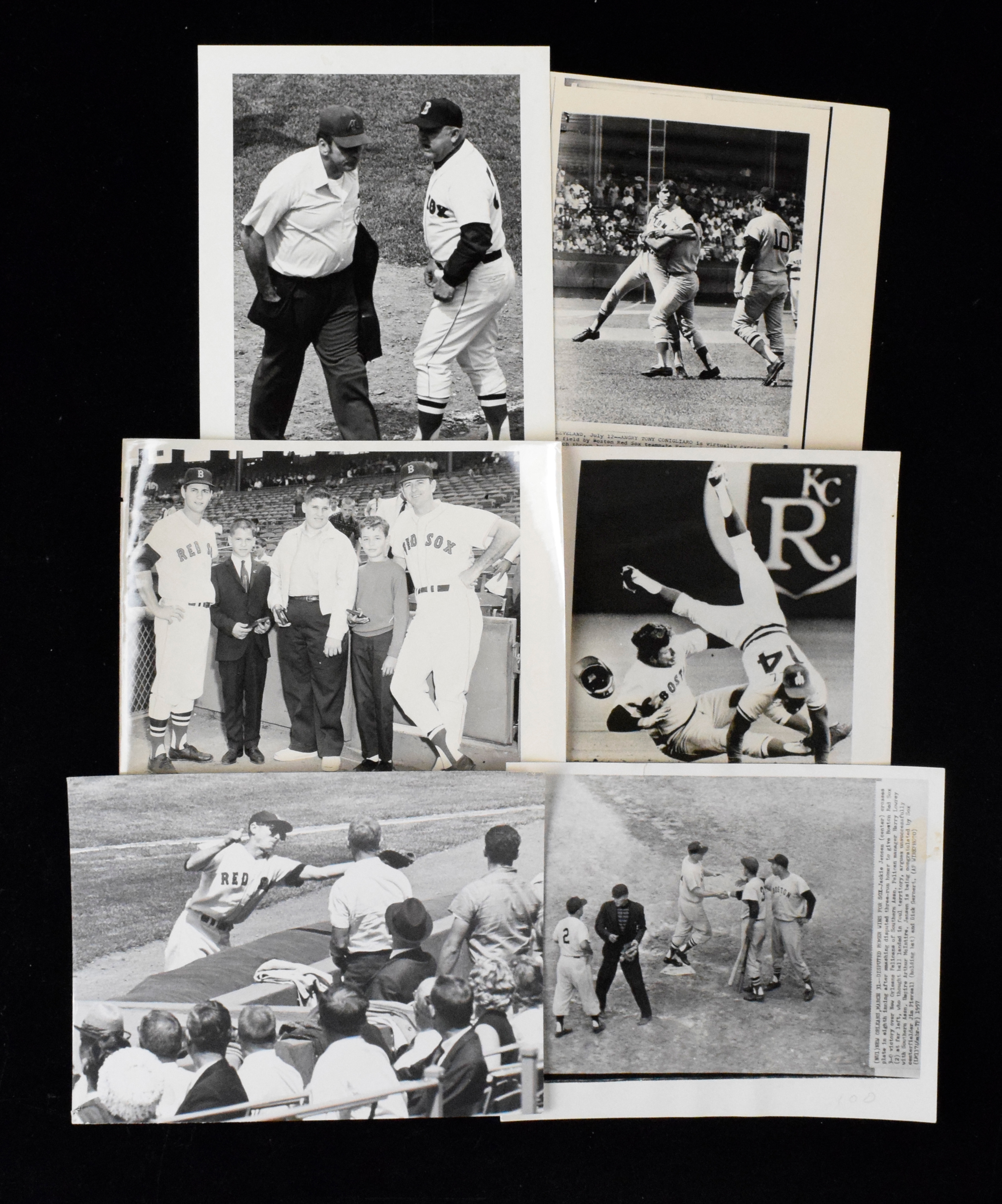 Description:Lot of (60) vintage Boston Red Sox photographs, c.1940s-70s (GD-EX/MT). Includes Carlton Fisk, Johnny Pesky, Tony Conigliaro, Pete Runnels, Boo Ferriss, Tex Hughson, Dom DiMaggio, Jackie Jensen, Rick Burleson, Bob Tillman, Mike Andrews, Don Zimmer, Dick Radatz, and many others. Various conditions throughout the lot. Most appear to average VG-VG/EX overall with normal age and handling wear. Range: GD-EX/MT