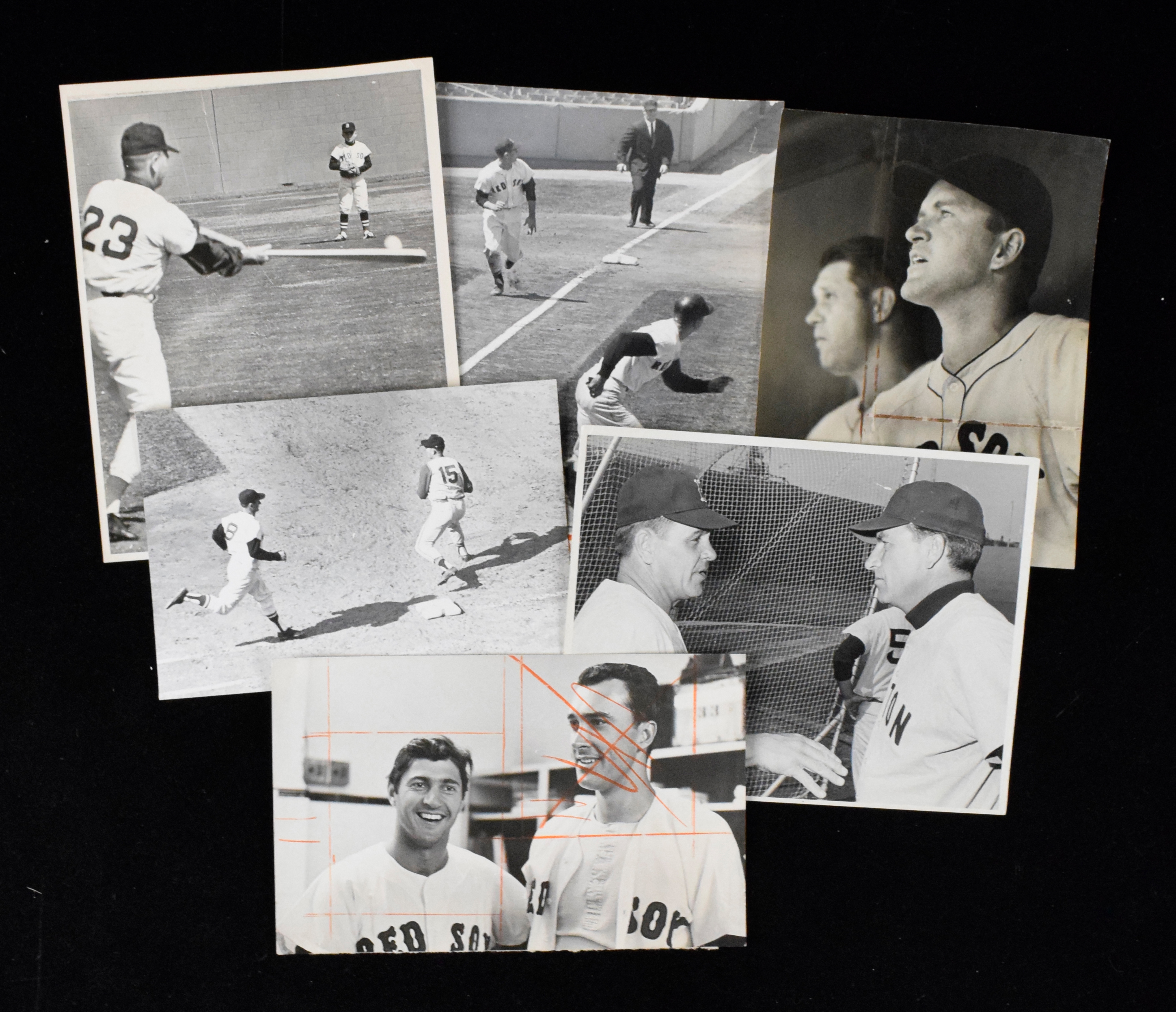 Description:Lot of (37) vintage Boston Red Sox photographs, c.1930s-70s (GD-EX/MT). Includes Joe Cronin, Carl Yastrzemski, Lou Boudreau, Dick Williams, Darrell Johnson, Ken Harrelson, Dom DiMaggio, Dave Morehead, Pete Runnels, Joe Foy, Don Schwall, Lou Clinton, Billy Gardner, and others. Most appear to average VG-VG/EX overall. Range: GD-EX/MT
