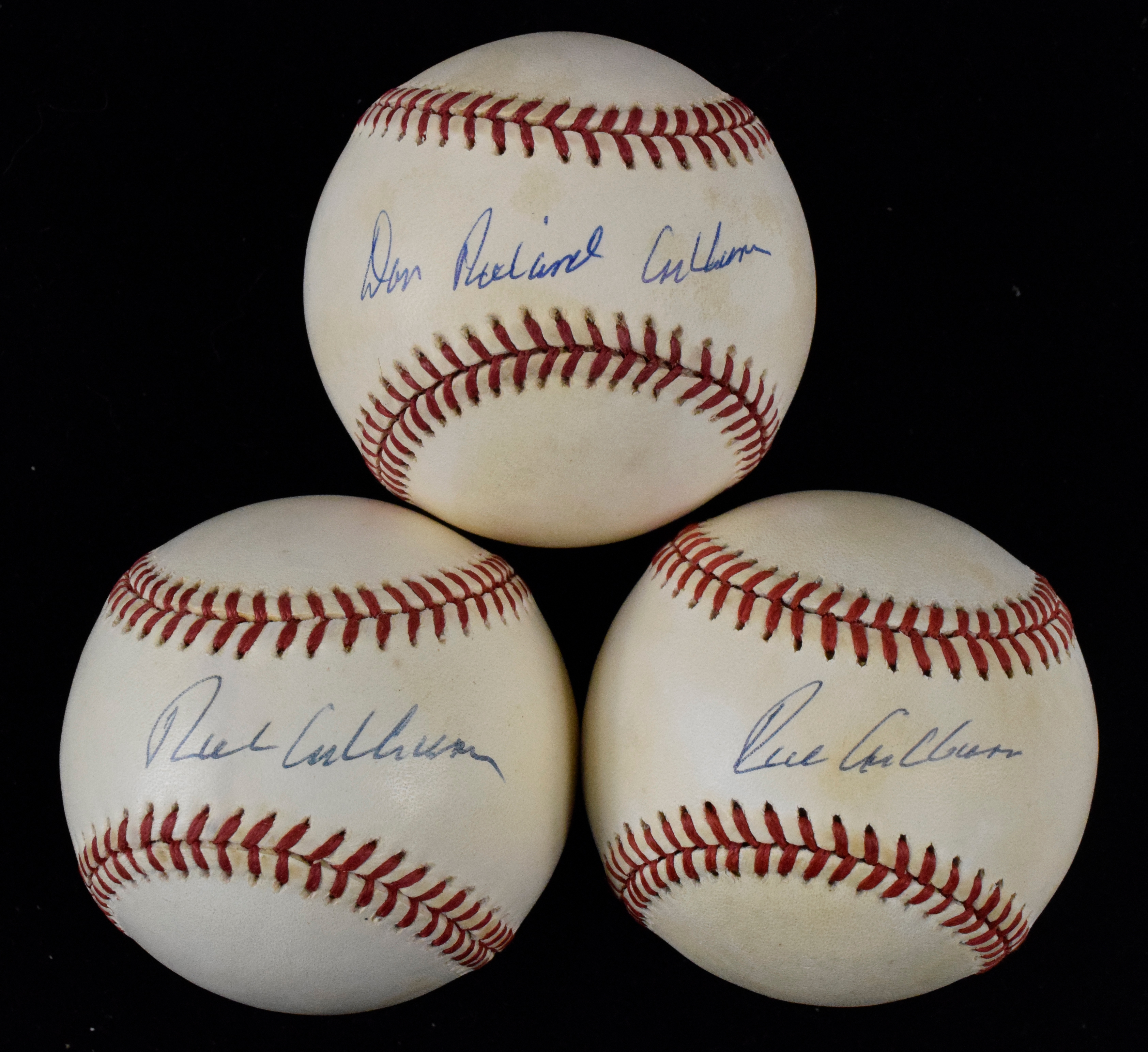 Description:Lot of (3) Richie Ashburn signed baseballs including full name (EX-EX/MT). Includes (2) W.White NL balls signed by Richie Ashburn, and L.Coleman NL ball full name signed by Don Richard Ashburn. Signatures rate 8 to 9 out of 10. Each has areas of light to moderate toning: EX-EX/MT