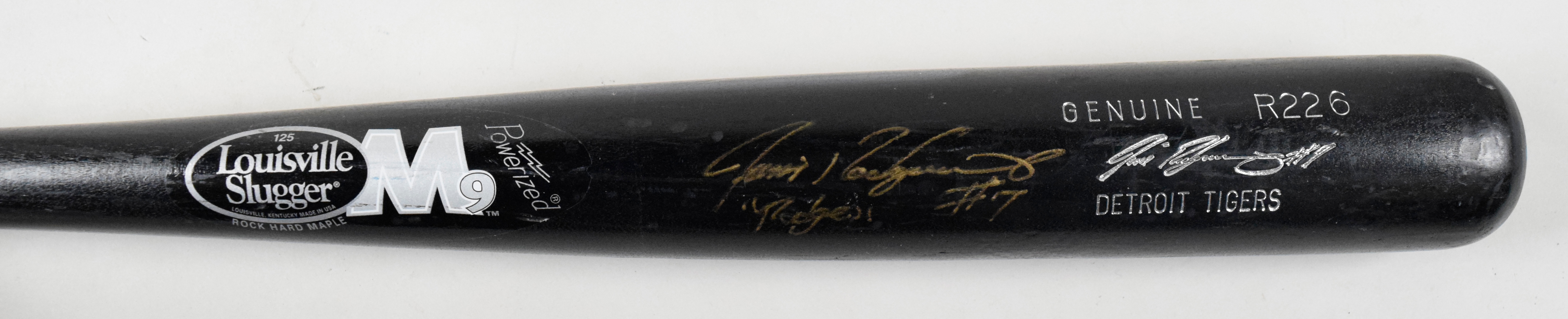 Description:Ivan Rodriguez signed & inscribed game used baseball bat, c.2004-08 - LOA signed by Lee Smith (EX). 34" Louisville Slugger R226 Ivan Rodriguez model bat with his #7 written on the knob and on the end of the bat, along with "31.7" weight also written on the knob. Rodriguez signed the bat in gold marker and added "Pudge" "#7" inscription. Signature rates 8 out of 10. Includes LOA signed by Lee Smith stating that this "signed / game used Ivan Rodriguez LVS R226 bat" was gifted to him by Rodriguez. Light use with some ball marks and stitching impressions: EX