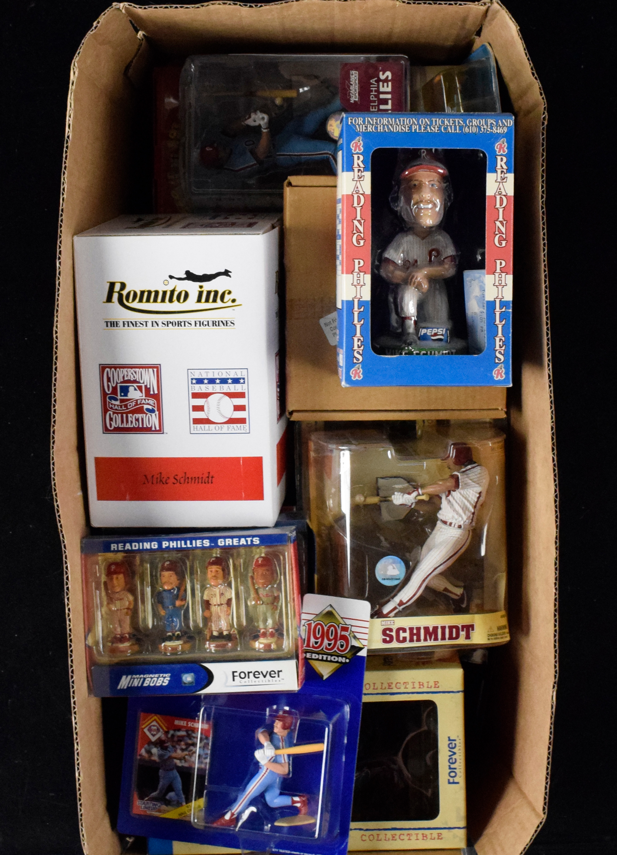 Description:Lot of (24) modern Mike Schmidt figurines, bobbleheads and collector plates (NIB; NM/MT). Large lot includes various Mike Schmidt figurines, bobbleheads, stadium giveways, collector plates and more, with highlights including Forever Collectibles, Romito, McFarlane, Starting Lineup, Hartland New Classics and others. Each remains in its original box/packaging, with figurines presumably in NM/MT or better condition.