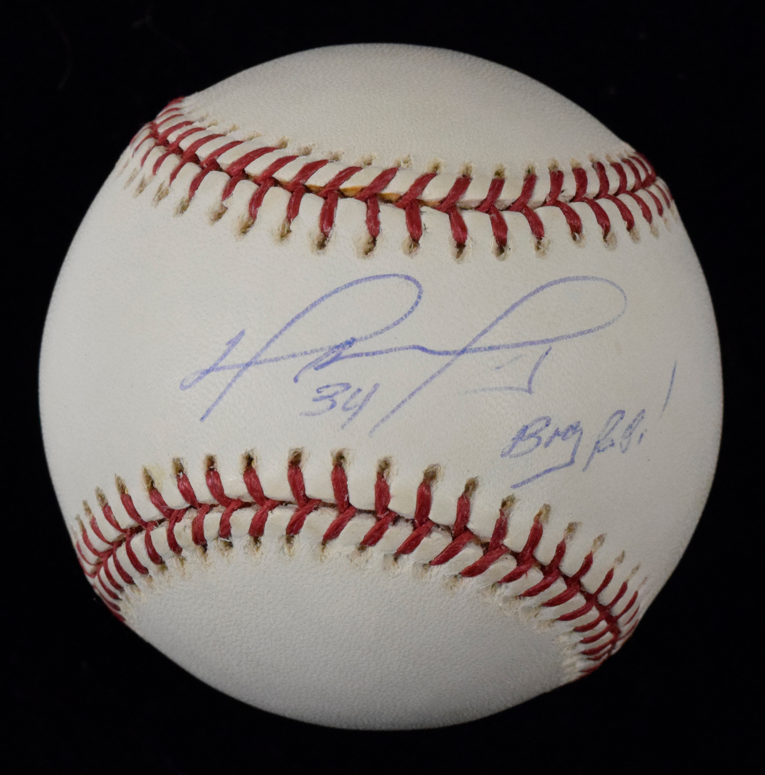 Description:David Ortiz signed and "Big Papi" inscribed 2004 World Series baseball (Sig. NM/MT). Very nice B. Selig 2004 World Series ball has been signed on the sweet spot by David Ortiz with "34" and "Big Papi!" inscription, rating 8 out of 10. Ball has little to no mentionable wear: NM/MT.