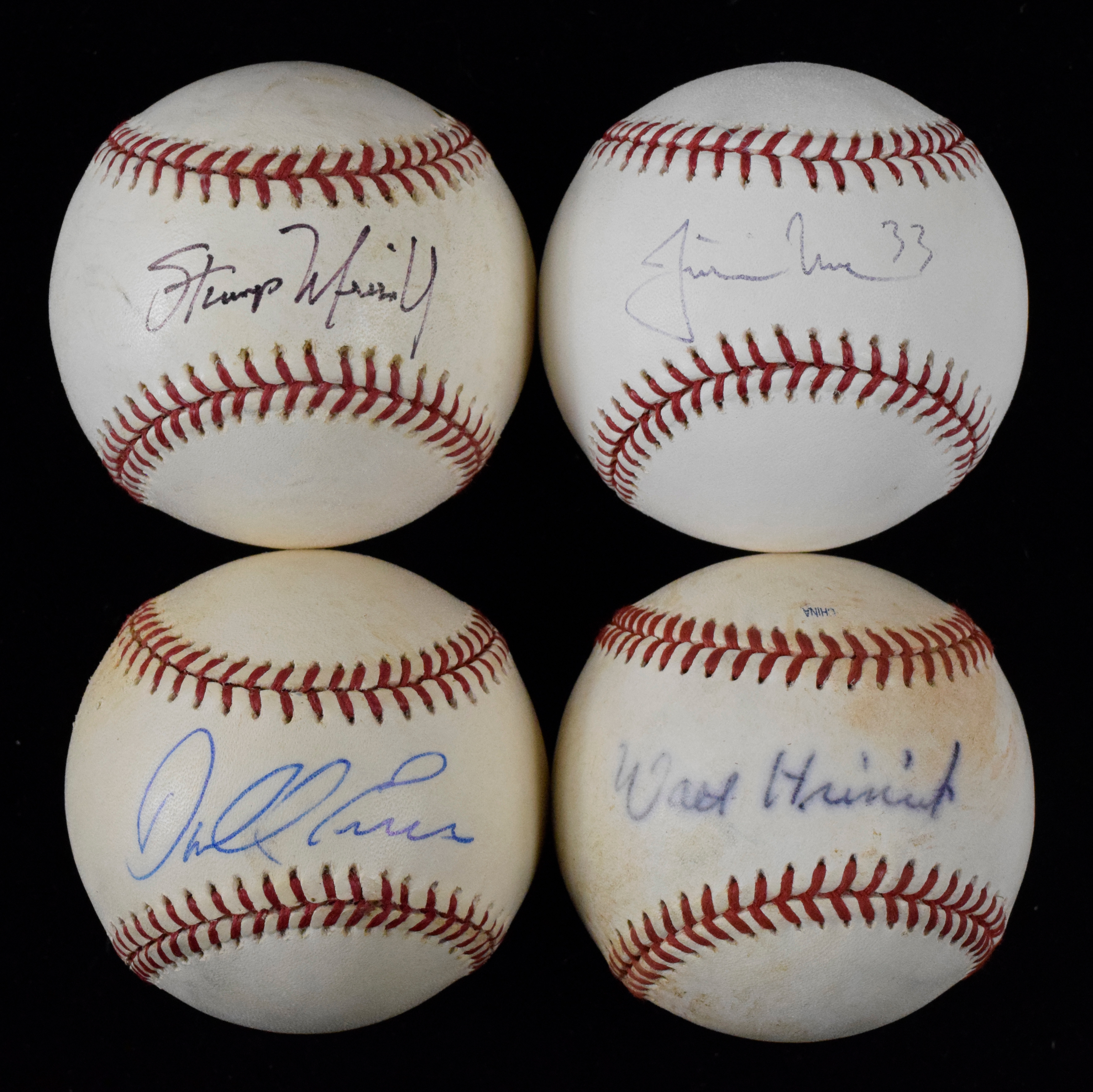 Description:Lot of (20) autographed baseballs, including Morneau, Evans and Hriniak (Sigs. GD-MT). Most are signed on official A.L., N.L. or MLB baseballs, with a few others. Balls are individually autographed by Jed Lawrie, (2) Clay Buchholz, Philip Hughes, Mark Bellhorn, Jack Billingham, Jeremy Guthrie (signature faded, rating 2 out of 10), Chris Carter, (2) Justin Masterson, Jerome Walton, Walt Hriniak, Justin Morneau, Darrell Evans, Andy Van Slyke, Jacoby Ellsbury, Stump Merrill, Joe Nathan, Benny Agbiyani and Dustin Hermanson. Signatures range from 2 (Guthrie) to 9 (avg. 7/8) out of 10, and balls have light to heavy toning/wear: GD-NM.