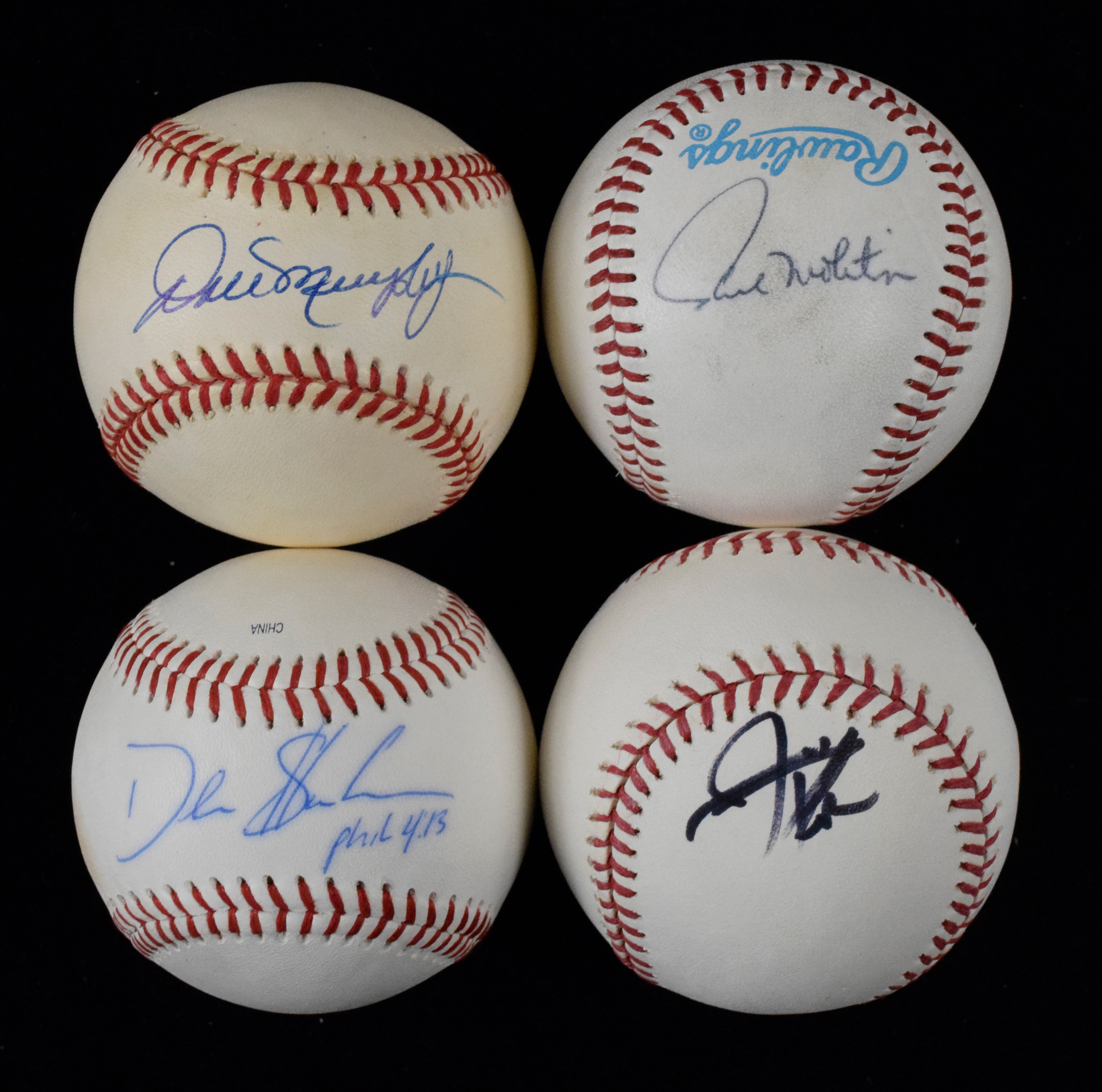 Description:Lot of (9) autographed baseballs, including Murphy, Thome and Molitor (Sigs. EX-MT). Lot includes (4) B. Selig MLB balls, individually signed by Jim Thome, Xander Bogaerts, Johnny Damon and Joey Votto; (2) G. Budig A.L. balls, individually signed by Alex Rodriguez (signature faded, rating 5 out of 10) and Bernie Williams; (1) North Central Leauge ball signed by Paul Molitor; (1) L. Coleman N.L. ball signed by Dale Murphy and (1) Minor League practice ball signed by Deion Sanders with "Phil 4:13" inscription. Signatures range from 5 (Rodriguez) to 9 out of 10 (avg. 7/8), and balls have light to moderate wear/toning: VG/EX-NM.Â