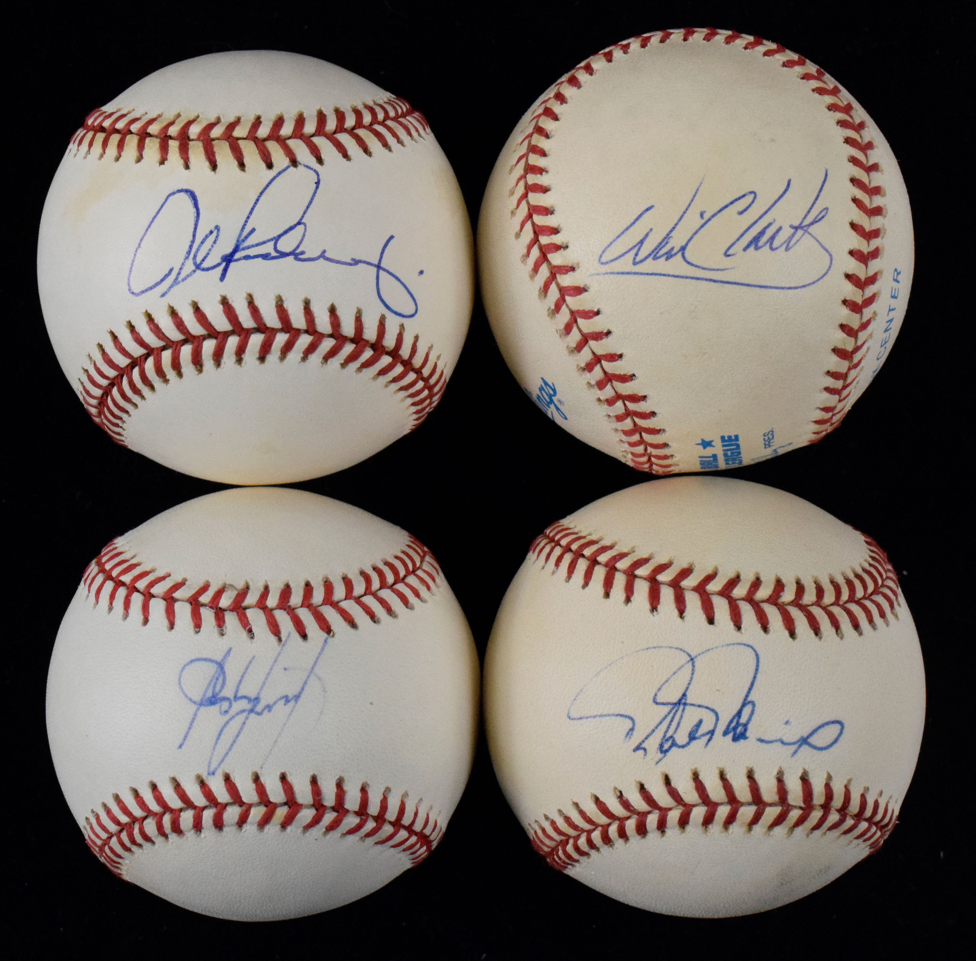 Description:Lot of (10) autographed baseballs, including Arod, Gonzalez and Palmeiro (Sigs. NM/MT-MT). All are signed on official A.L., N.L. or MLB baseballs, and have been individually autographed by Rafael Palmeiro, Alex Rodriguez (NOTE: "A" appears traced over, possibly by Rodriguez), Xander Bogaerts, Will Clark, George Foster, Johnny Pesky, Juan Gonzalez, Jose Cruz Jr., Joey Votto and Justin Masterson. Signatures rate 8/9 out of 10, and balls have light to moderate toning: EX-NM.