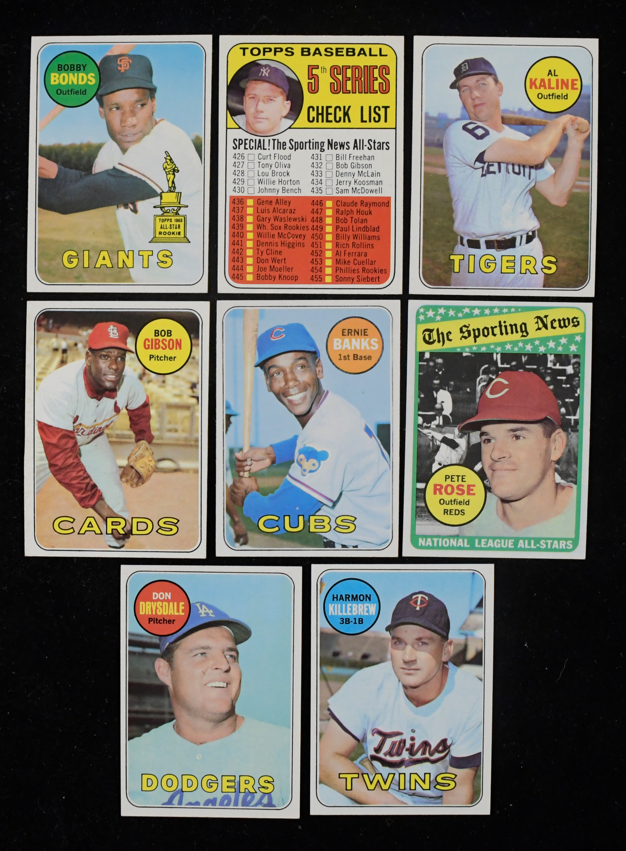 Description:High-grade 1969 Topps partial set (620/664) with HOFers and (75) high numbers (VG-NM/MT). Crisp near-complete set offers (620) different cards of the (664) issued, including (75) cards from the final high-number series (#s 589-664). Lot includes primarily commons and minor stars, with some Hall of Famers but high-value cards/major stars removed. Highlights include #s 1-12 League Leaders (missing #11), 20 Ernie Banks, 35 Joe Morgan, 75 Luis Aparicio, 200 Bob Gibson, 216 Don Sutton, 235 Catfish Hunter, 350 Richie Allen, 370 Juan Marichal, 375 Harmon Killebrew, 385 Orlando Cepeda, 400 Don Drysdale, 410 Al Kaline, 412 Mickey Mantle checklist (unmarked), 424 Pete Rose AS, 430 Johnny Bench AS, 440 Willie McCovey, 485 Gaylord Perry, 539 Ted Williams Shows How, 545 Willie Stargell, 564 Gil Hodges, 572 Willie McCovey/Juan Marichal, 630 Bobby Bonds RC, 640 Fergie Jenkins, 650 Ted Williams and more. Near-set, housed in pages and a binder, appears mostly EX/MT-NM/MT with some less. Range: VG-NM/MT. ($750-$1,250)