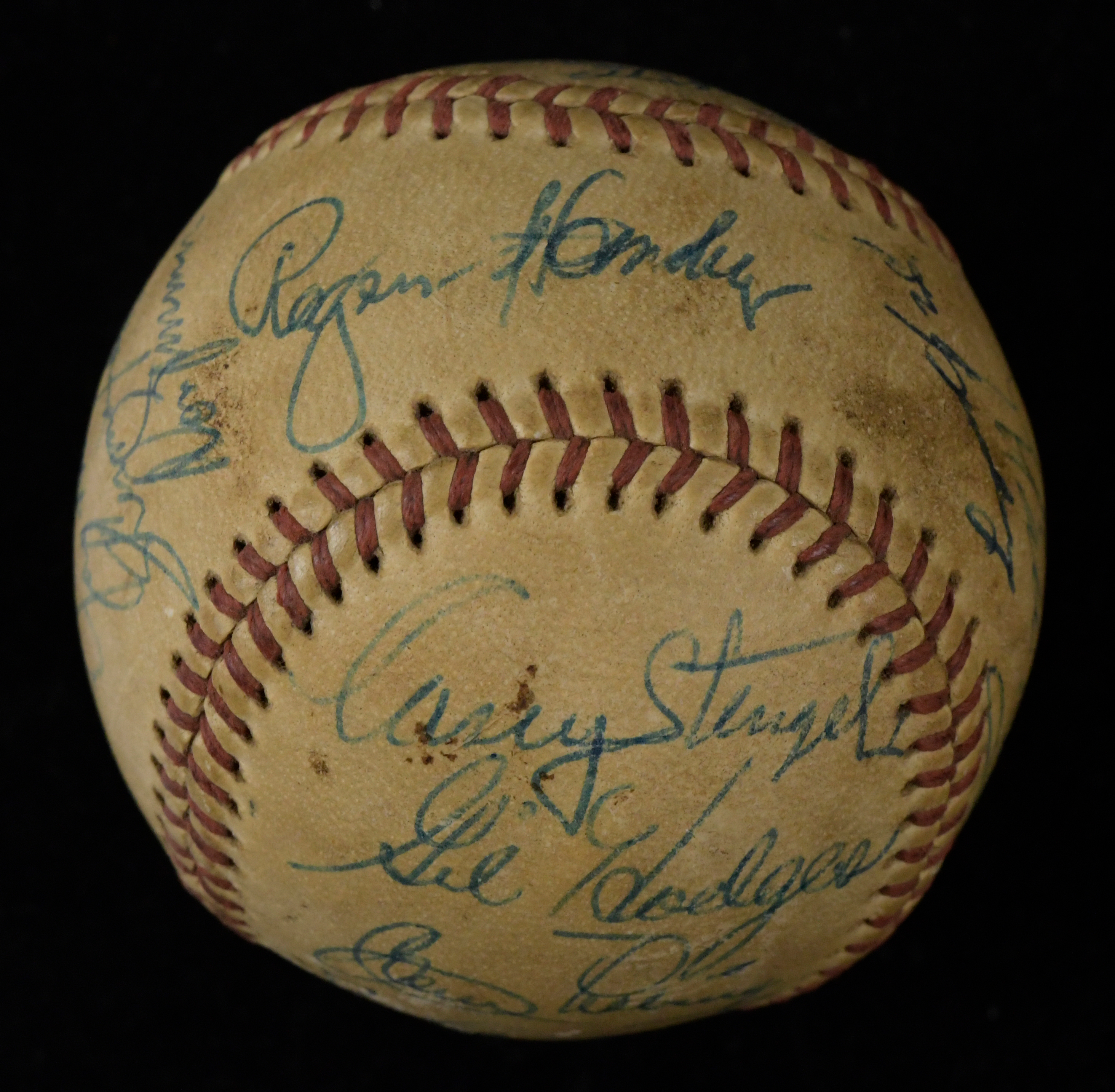 Description:1962 New York Mets spring training team signed baseball with Hornsby and (4) other HOFers - JSA (VG/EX). Used ball signed by (25) including Casey Stengel, Rogers Hornsby, Red Ruffing, Richie Ashburn, Gil Hodges, Frank Thomas, Don Zimmer, Roger Craig, Jay Hook, Charlie Neal, Joe Christopher, Ed Bouchee, Clem Labine, and others. Signatures rate 1/2 (Gus Bell) to 9 (avg 7) out of 10. Includes full LOA from JSA (incorrectly lists Ted Lyons on the ball instead of Ted Lepcio who was released before the season). The ball shows use, with stampings no longer visible: VG/EX ($1,000-$2,000)