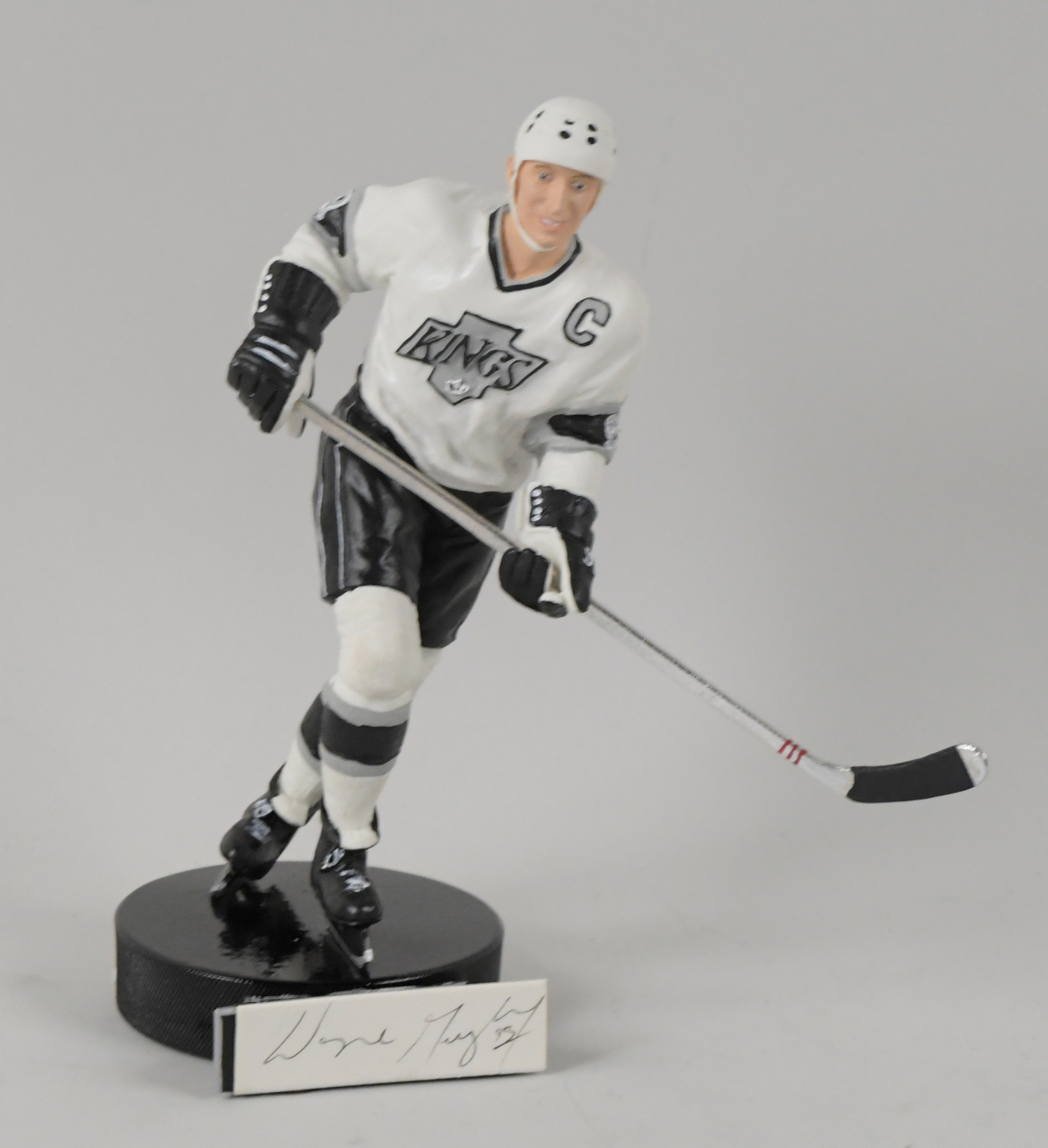 Description:1989 Gartlan Wayne Gretzky autographed artist's proof figurine in original box (MT). Like-new Gartlan artist's proof statue is numbered to 1,851 on the base, and signed on the front by Wayne Gretzky in black ink, rating 8 out of 10. Figurine remains in its original packaging and box: MT. Box: EX.