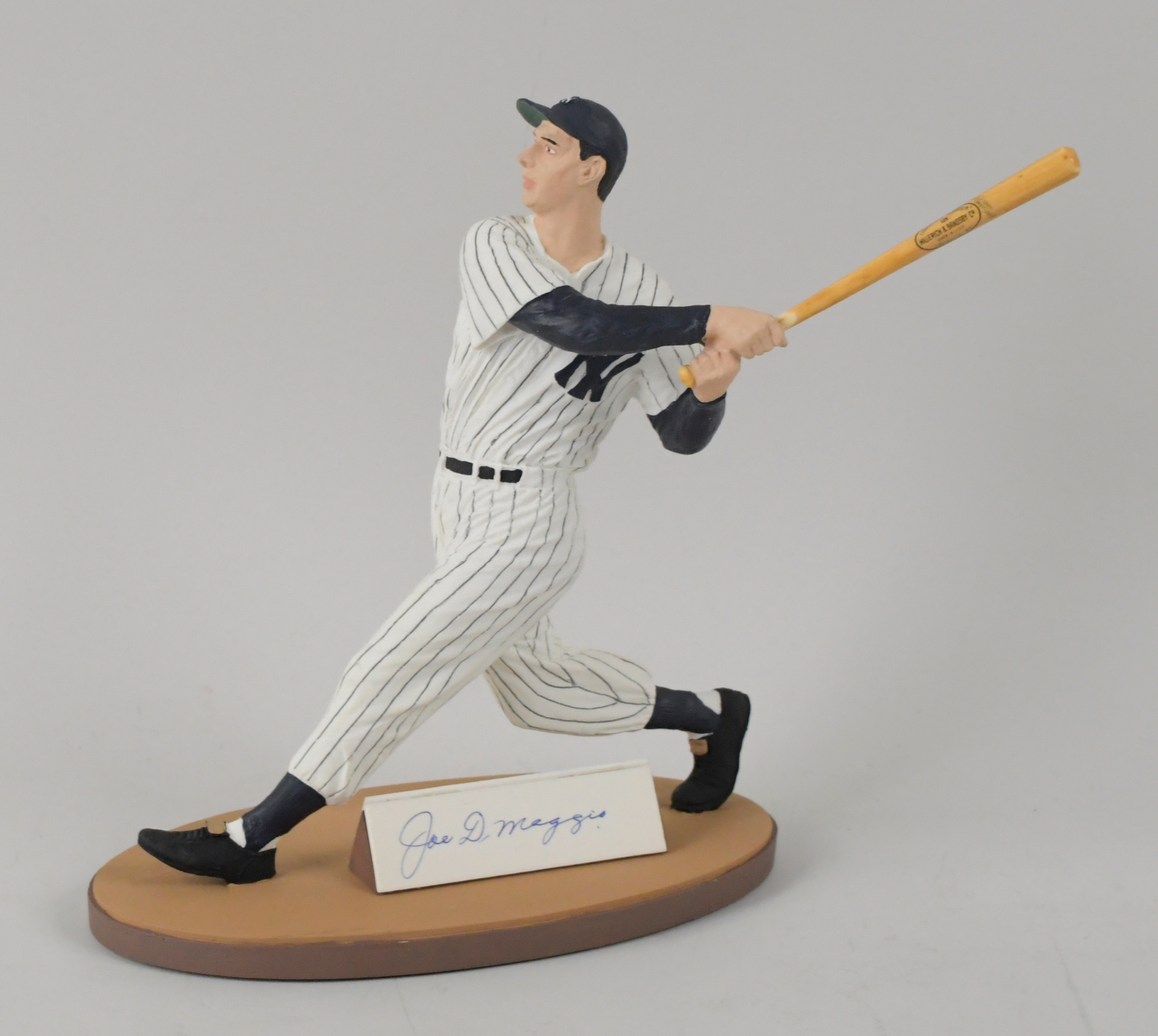 Description:1990 Gartlan Joe DiMaggio autographed figurine in original box (MT). Like-new Gartlan statue is numbered 317/325 on the base, and signed on the front by Joe DiMaggio and R.H. Gartlan on the back, with signatures rating 9/10 out of 10. Figurine remains in its original packaging and box: MT. Box: EX.