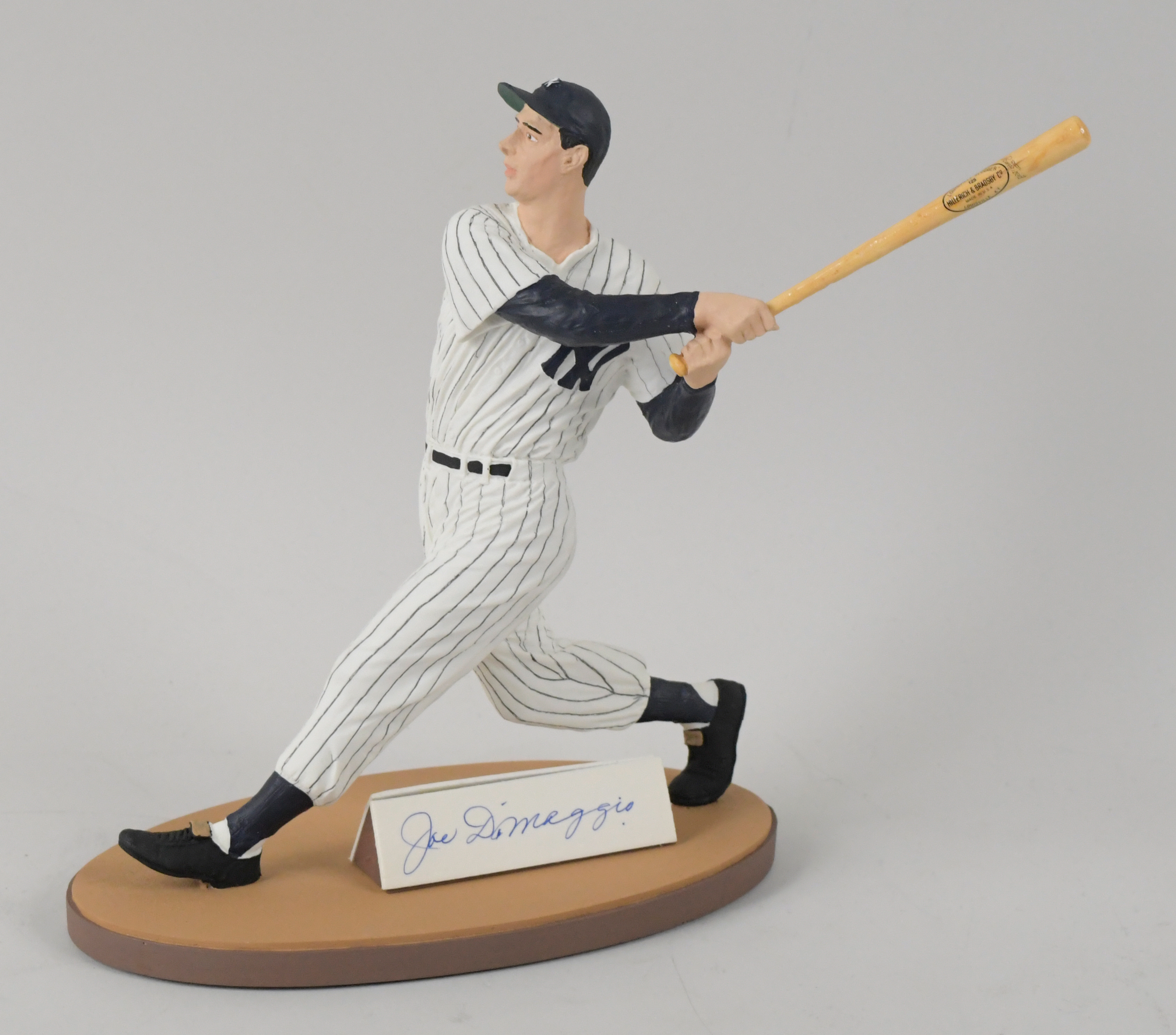 Description:1990 Gartlan Joe DiMaggio autographed figurine in original box (MT). Like-new Gartlan statue is numbered 319/325 on the base, and signed on the front by Joe DiMaggio and R.H. Gartlan on the back, with signatures rating 9/10 out of 10. Figurine remains in its original packaging and box: MT. Box: EX.