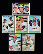 Description:Lot of approx. (350) 1966 and 1967 Topps cards with many HOFers (PR-EX). Generally lower-grade lot (with duplication) includes commons, minor stars, and numerous stars and Hall of Famers. Includes approx. (200) 1966 Topps cards, with mostly low numbers (and a few high numbers) highlighted by #s 219 Willie Mays LDR, 386 Gil Hodges, 90 Luis Aparicio, 72 Tony Perez, (2) 420 Juan Marichal, 132 Orlando Cepeda, 80 Richie Ashburn, 435 Jim Bunning, 589 Lou Klimchock and (2) 290 Ron Santo; and approx. (150) 1967 Topps low-number cards, highlighted by #s 423 Willie Mays/Willie McCovey, 320 Gaylord Perry, 450 Richie Allen, (2) 326 Bob Uecker, 63 Lou Brock/Curt Flood, 210 Bob Gibson, 333 Fergie Jenkins, 510 Bill Mazeroski, 475 Jim Palmer, 100 Frank Robinson, 60 Luis Aparicio, 460 Harmon Killebrew, (15) League Leader cards including Mays & Koufax and many others. Most appear G/VG-VG overall with some better and some worse. Stars generally in worse condition than the commons. Range: PR-EX (including some possibly trimmed and marked checklists)