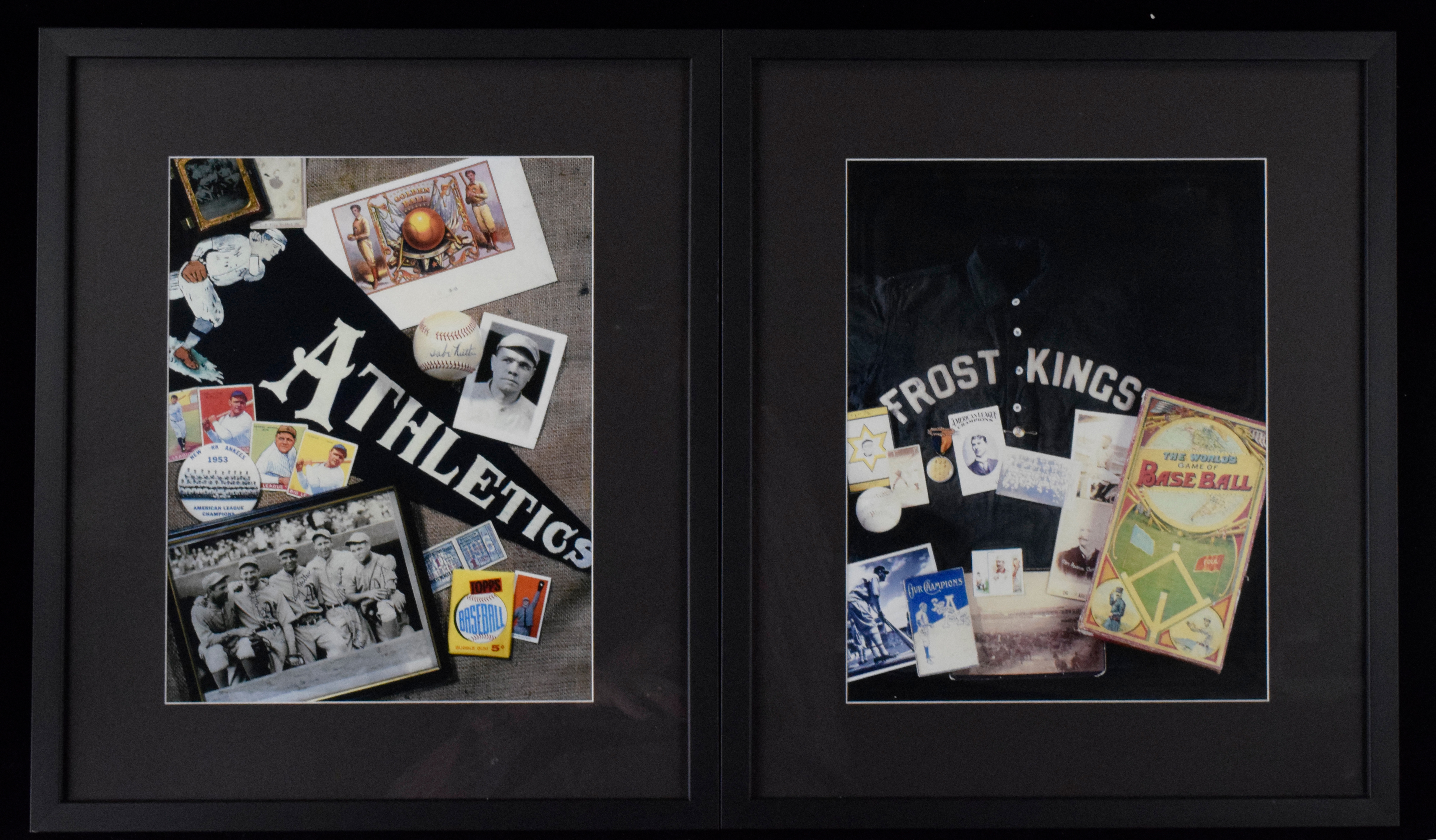 Description:Lot of (4) framed baseball memorabilia photographs (NM-NM/MT). Each frame measures approx. 17"x20", with matted photos picturing various pieces of baseball memorabilia sold by Hunt Auctions in the early years of the company. Due to framing, complete conditions are unknown: NM-NM/MT appearance