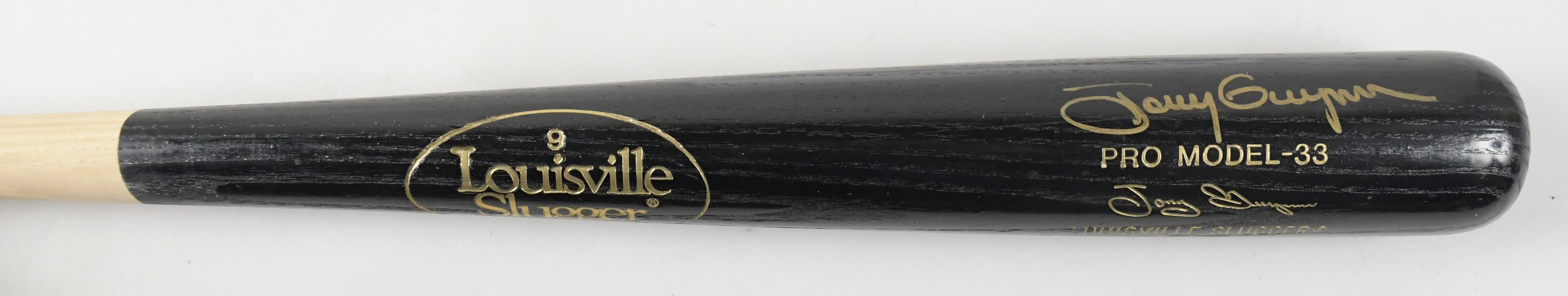 Description:Tony Gwynn signed Louisville Slugger baseball bat (NM). 33" Louisville Slugger No. 9 Tony Gwynn model bat signed by Gwynn in gold marker. Signature rates 8/9 out of 10: NM