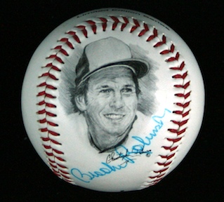 Description:Brooks Robinson single-signed 1994 McDonald's Legends of Baseball Fotoball. Robinson signed the side panel in blue ink under his photo. Opposite side panal includes mini-bio. Sweet spot includes Robinson's facsimile auto. Signature rates 9 out of 10. Incl. COA from PSA/DNA (serial #ed sticker is affixed): EX/MT-NM