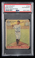 See a Picture of this Item 26 Babe Ruth 1933 Goudey #144 baseball card. Well centered exam $6,000.00 ($500-$1,000) Closed