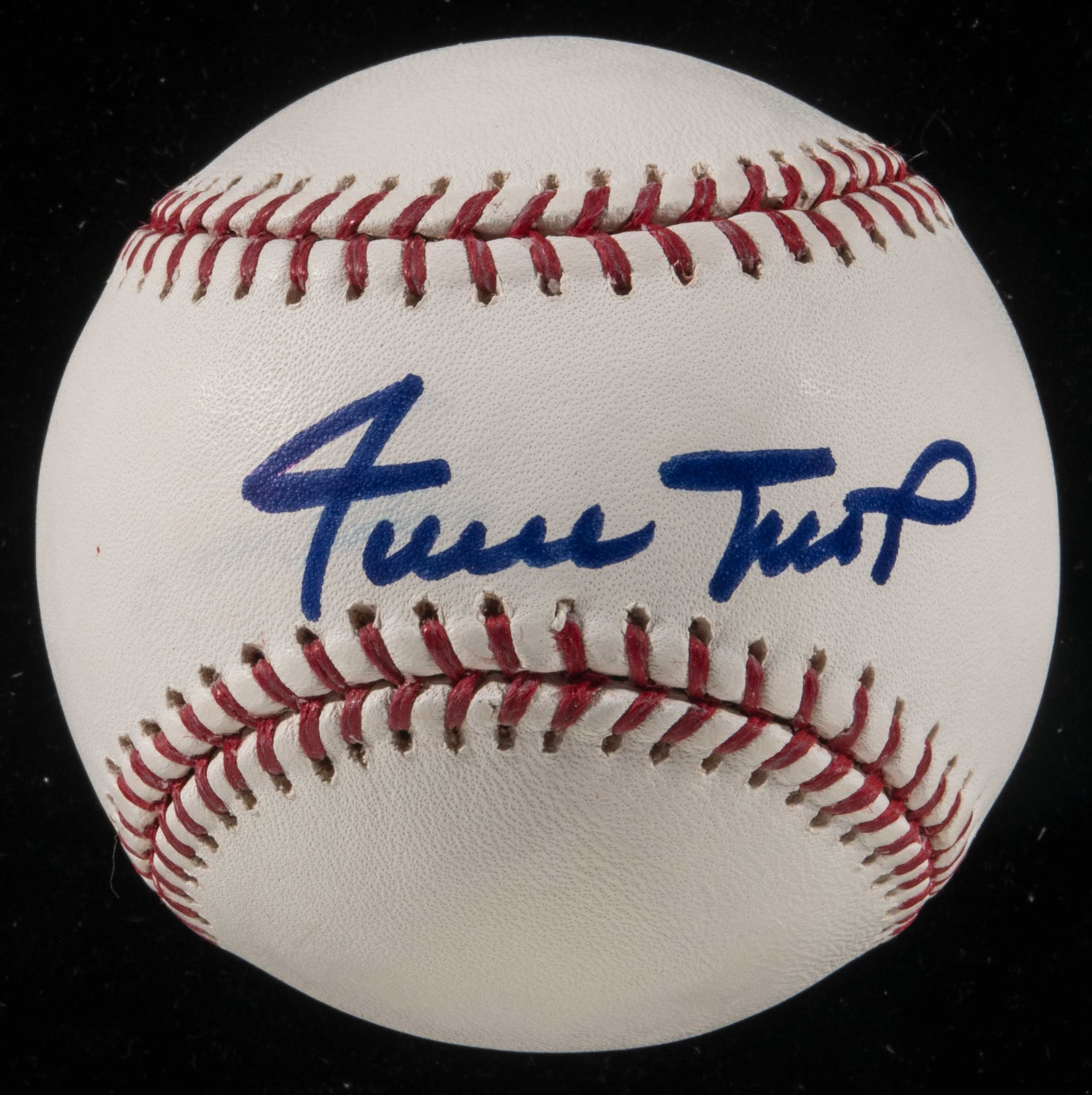 Description:Willie Mays single signed baseball (PSA/DNA 10 GEM MINT). Unused white A.Selig MLB baseball signed across the sweet spot by Willie Mays in blue felt tip marker with notably bold signature strength and flawless formation. The autograph was assigned the highest grade of 10 out of 10 by PSA/DNA and was among the very finest condition exemplars from a small overall total signed baseball group in the Mays Collection. Includes full LOA from PSA/DNA (10 GEM MINT) and certificate of provenance from the Willie Mays Collection: GEM MINT