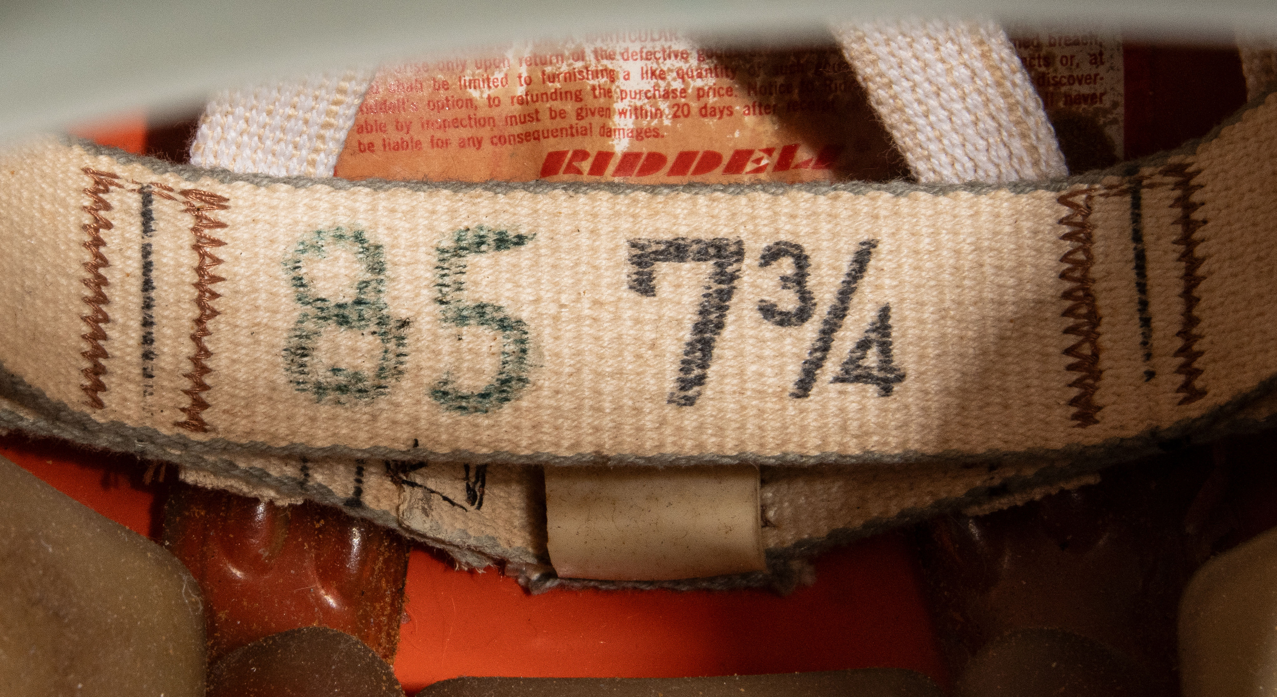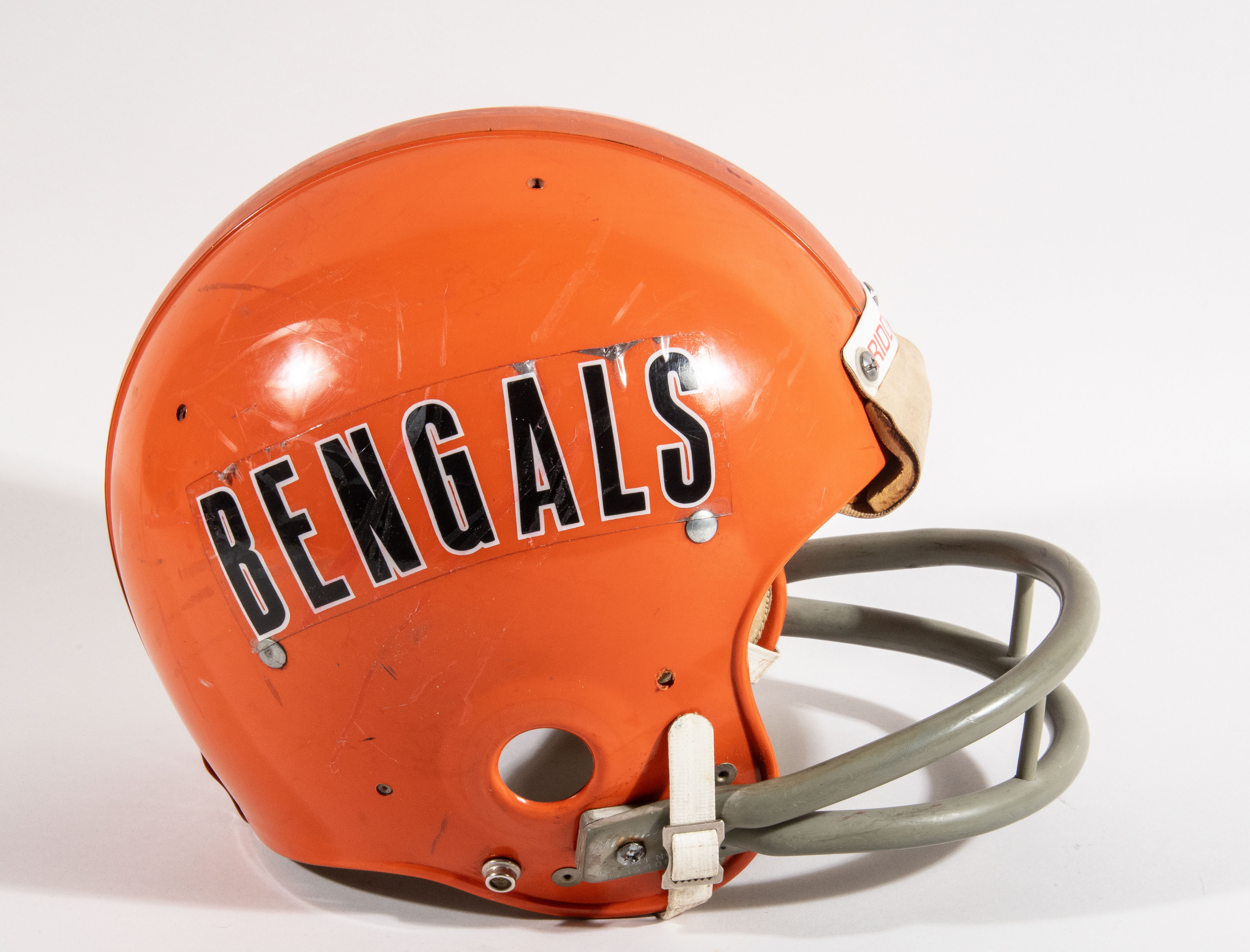 Description:Late 1970s Issac Curtis Cincinnati Bengals professional model helmet. Riddell helmet has "Bengals" logo decals applied on either side. "Riddell" maker name is noted on the front bumper and there are a number of labels applied inside, one of which has player number "85" written on in period marker. The number is also written on one of the straps which secures the suspension style interior. An additional row of air bubble padding which rings the lower back of the interior, combined with style of the Riddell marked bumper, lead us to late 1970s era dating (the team switched logo style in 1980). Nice use is evident throughout and there period chinstrap and two-bar facemask are attached. Curtis is a member of Bengals Ring of Honor and was named to their 50th Anniversary Team in recognition of his time with the franchise. Includes LOA from Hunt Auctions: EX
