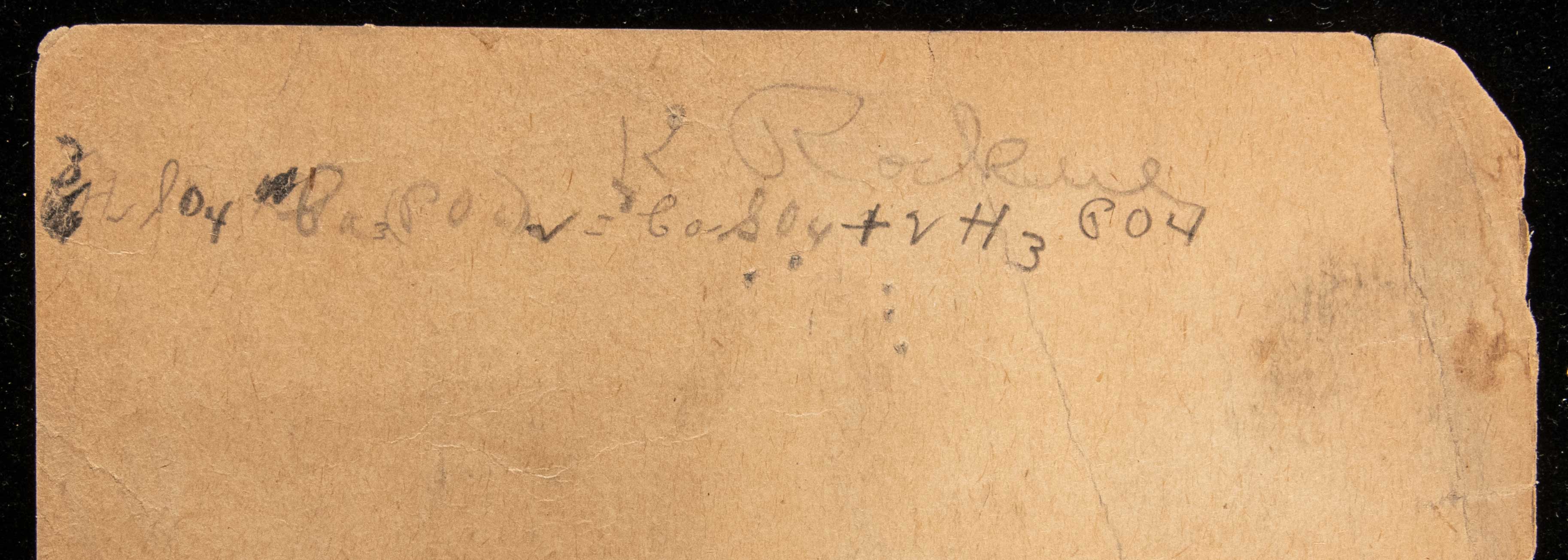 Description:Knute Rockne twice autographed "Chemistry" notebook from Notre Dame c.1910. Original lined paper writing tablet (6"x9") was used by Knute Rockne during his days as a student at Notre Dame. He has signed both lower front and inside front cover in pencil "K Rocke" rating approx. 5/6-6/7 out of 10. "KR" initials on the outside were presumably done by him as well however they have been traced over. The year 1910 is filled in on lower front cover. The inside is filled with notes that appear to largely related to chemistry (and he has titled the first page to that effect at the top) with some other content mixed in. Handling and some general age/storage related wear including loose covers, some loose pages, chipping, small tears, creases, and other flaws. Some marks/scribbles throughout may have be done by someone else (in a few cases they appear child like). A desirable piece related to the school at which Rockne would later become a legendary coach. Includes full LOA from PSA/DNA: FR