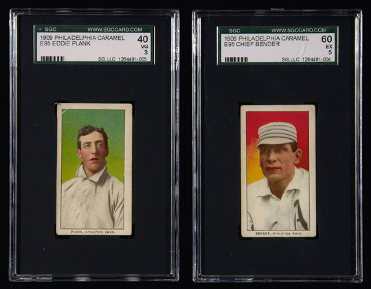 Lot of (2) 1909 E95 Philadelphia Caramel HOF'er cards: Eddie Plank: SGC 40 VG and Chief Bender: SGC 60 EX