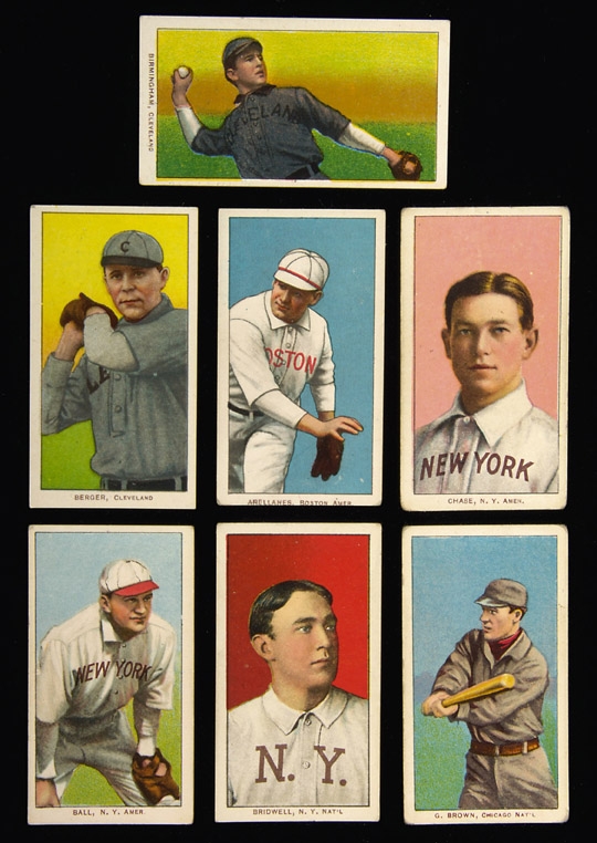 Description:Lot of (50) 1909-11 T-206 baseball tobacco cards. Uniformly clean grouping with either Sweet Caporal, Old Mill, or Piedmont backs to include Abbaticchio, Abstein, Alperman, Ames (glove), Ames (pitching), Ames (portrait), Arelianes, Ball, Ball, Barbeau, Beck , Becker, Bell (pitching), Bell (throwing), Bergen (bat), Bergen (glove), Berger, Bescher (glove), Bescher (portrait), Birmingham, Bliss, Bowerman, Bradley (bat), Bradley (portrait), Bransfield, Bridwell, Bridwell, Burch (bat), Burch (glove), Chase, F. Jones (headshot), F. Jones (standing), G. Brown, Hemphill, Herzog, Herzog, Hinchman, Hoblitzell, Hofman (bat), Hofman (St. Louis Amer), Howard, Howell (portrait), Howell (standing), Hulswitt, Hummel, Hunter, Ibbell, Jacklitsch, Jones (Detroit, Jones (St. Louis Amer). Fine condition assemblage with the majority grading VG/EX or better inclusive of a relatively large number of EX cards: Range VG-EX/MT