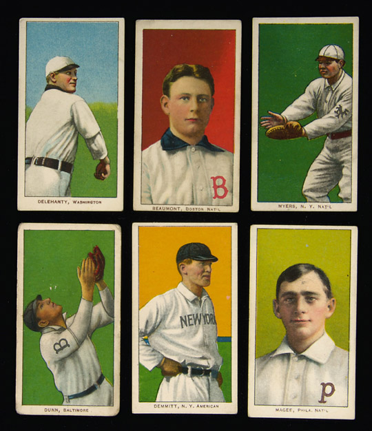 Description:Lot of (50) 1909-11 T-206 baseball tobacco cards. Uniformly clean grouping with either Sweet Caporal, Old Mill, or Piedmont backs to include Adkins, Anderson, Barry, Barry, Bates, Beaumont, Brain, Burns, Bush, Byrne, Camnitz (arms crossed), Camnitz (profile), Campbell, Carrigan, Chappelle, Charles, Clymer, Conroy (bat), Conroy (glove), Covaleski, Crandall (portrait with hat), Crandall (portrait no hat), Cree, Criger, Criss, Dahlen, Davis, Delehanty, Demmitt, Downs, Dunn, H. Davis, J.J. Clarke, Killian (glove), Killian (portrait), Kleinow, Kling, Lake, Leach, Lord, Maddox, Magee, Myers, Unglaub, Weimer, White, Wilhelm (bat), Wilhelm (hands folded), Willett , Willetts. Fine condition assemblage with the majority grading VG/EX or better inclusive of a relatively large number of EX cards: Range VG-EX/MT