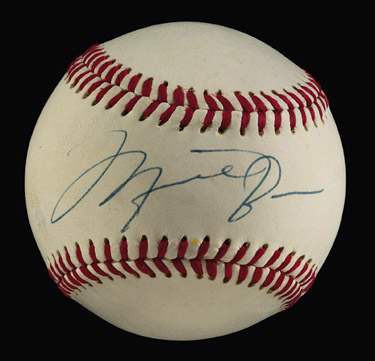Description:Michael Jordan single signed baseball. Wilson "Major League" baseball is signed across the sweet spot by Jordan in blue ink. Signature rates 9 out of 10. The ball itself has a slight ink blemish just to the left of the "M" in Michael. Includes LOA from JSA and retains its Upper Deck Authenticated hologram: NM