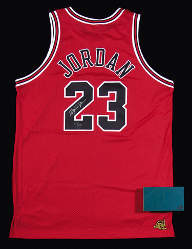 Description:UDA Michael Jordan autographed 1997-98 Chicago Bulls Final Floor Red Jersey and floor section. On June 14, 1998 Michael Jordan hit perhaps his most famous shot - a clutch 18-foot jumper with 5.2 seconds left in Game 6 of the 1998 NBA Finals. The picture-perfect shot against the Utah Jazz at the Delta Center in Salt Lake City gave Michael and the Chicago Bulls their sixth NBA title in eight years and cemented M.J.'s legend. Produced in commemoration of that shot, this red mesh Chicago Bulls Nike replica jersey is signed by Jordan in silver ink on the back number. Signature rates 9 out of 10. Hand numbered "179/230" from an extremely limited edition of 230 pieces. Embroidered gold "MJ's Final Floor" patch appears on back tail. Also included is an authentic 4'x6' piece of the original floor from the game played at the Delta Center in Salt Lake City bearing the "MJ's Final Floor" logo stamp. Includes COA from UDA and LOA from JSA: NM-MT