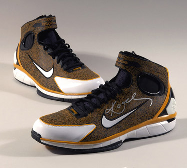 Description:Kobe Bryant autographed Nike Air Zoom Huarache shoes. Pair of player issued professional quality size 14 shoes with "PROMO" tagging inside tongue. Bryant signed the left shoe in silver marker. Signature rates 10 out of 10. Shoes exhibit no usage wear. Acquired from the Philadelphia Phillies ALS charity event on June 22, 2009. Includes LOA from JSA and COA from the Philadelphia Phillies: NM