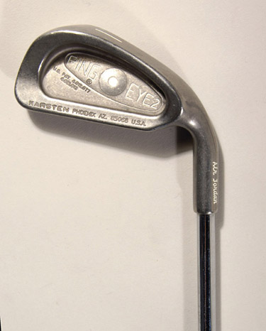 Description:Michael Jordan personal golf club. Custom made "Ping EYE2" one iron bears impressed titling on club head and "Air Jordan" is impressed in white lettering on the connecting shaft. Club head shows light usage wear. The offered golf club originated from the personal collection of Michael Jordan and includes COA from Upper Deck Authenticated: EX