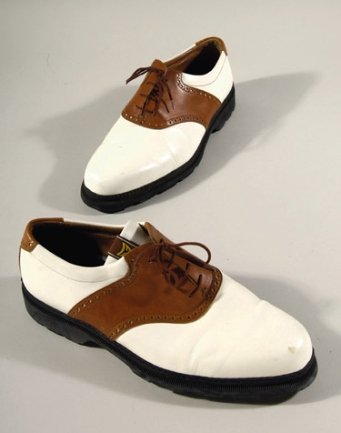 Description:Pair of Michael Jordan personal golf shoes. Two toned tan and white leather Toschi brand custom golf shoes show light general usage wear. The offered cleats originated from the personal collection of Michael Jordan and include COA from Upper Deck Authenticated: EX-MT