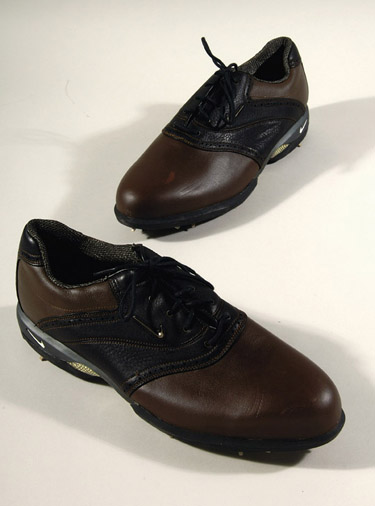 Description:Pair of Michael Jordan personal golf shoes. Two toned brown leather Nike Air brand custom golf shoes show no visible usage wear. The offered cleats originated from the personal collection of Michael Jordan and include COA from Upper Deck Authenticated: EX-MT
