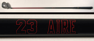 Description:Michael Jordan personal golf club. Custom made "Club Aire" driver exhibits impressed titling on club head and "23 Aire" is printed in red on the club shaft. The club itself shows light usage wear. The offered golf club originated from the personal collection of Michael Jordan and includes COA from Upper Deck Authenticated: EX