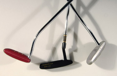 Description:Lot of (3) Michael Jordan personal golf clubs. Group of (3) putters includes an "Epperson" model, Titleist "Scotty Cameron Caliente" custom club with leather cover (small label with Jordan's printed name is affixed to shaft); and Slotline "Champions for Kids 1993" club. The offered clubs originated from the personal collection of Michael Jordan and include (3) individual COAs (one per club) from Upper Deck Authenticated: NM