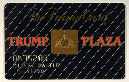 ***UPDATED DESCRIPTION*** Mickey Mantle personal credit card. Trump Plaza credit card issued to Mickey Mantle in 1990 features raised "Mickey Mantle" name on the front in gold. Signed in an unknown hand on the back: EX-MT