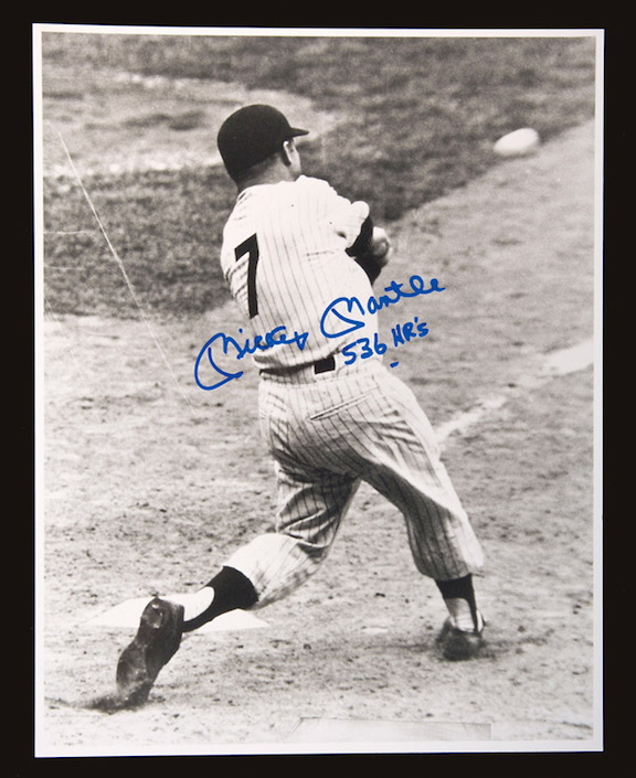 Mickey Mantle autographed 11"x14" photograph. Black and white photograph has been signed on the front, "Mickey Mantle" with added "536 HR's" inscription. Signature rates 9 out of 10. Includes full LOA from JSA: EX/MT-NM