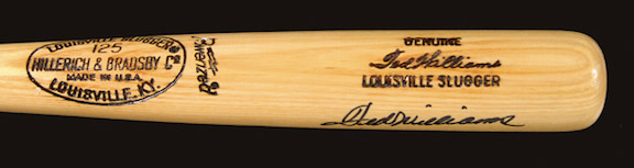 Ted Williams autographed bat. Louisville Slugger 125 Ted Williams signature model bat is signed on the barrel in black marker. Signature rates 9 out of 10. Includes LOA from JSA: NM-MT