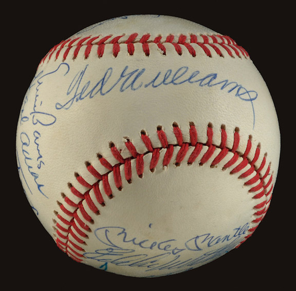 Description:500 Home Run Club autographed baseball. B.Giamatti NL ball signed by (11) members of the 500 HR Club to include Williams, Mantle, Mathews, F.Robinson, Jackson, McCovey, Mays, Aaron, Banks, Killebrew, and Schmidt. Sigs range from 9-10 out of 10. Ball itself has a few very minor areas of toning. Includes LOA from JSA and COA/hologram from Green Diamond Sports: NM