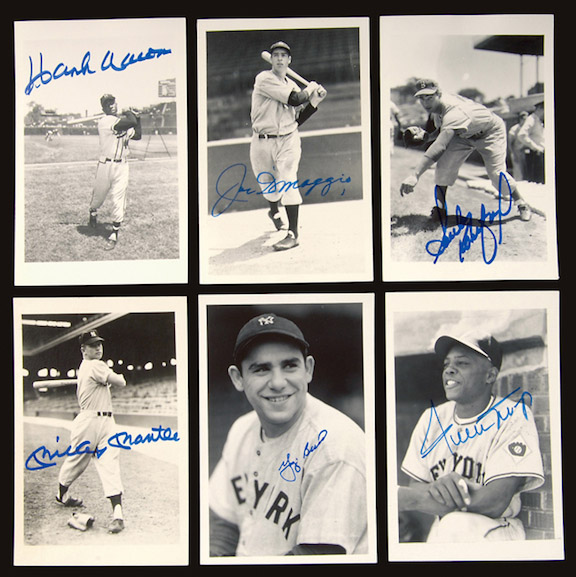 Description:Lot of (47) Hall of Fame autographed Burke/Brace Real Photo Postcards and photos. Outstanding collection of signed postcards and postcard sized prints featuring the work of noted photographers George Burke and George Brace. Includes Mantle, DiMaggio, Koufax, Ashburn, Ford, Aaron, Musial, Durocher, Doby, Lasorda, Aparicio, Kaline, F.Robinson, Sewell, Mays, Rizzuto, Snider, Hubbell, B.Williams, Spahn, Newhouser, Conlan, Killebrew, Banks, Mathews, Hoyt, McCovey, Dickey, Bunning, Herman, Gibson, T.Jackson, Berra, Mize, Appling, Barlick, and others. Marker signatures rate 8-9 out of 10 (one sig. smudged). All but (13) have post card backs. One card has back damage. Exceptional selection of imagery all printed off of the original negatives likely in the 1980s. Includes LOA from JSA: EX/MT-NM