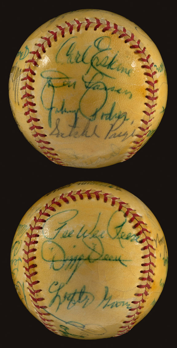 Description:Hall of Famers and stars autographed baseball. Toned C.Feeney ONL ball has been signed by 17 including Satchel Paige, Lefty Grove, Joe Medwick, Pee Wee Reese, Mickey Mantle, Lefty Gomez, Carl Furillo, and others. Ink signatures rate 6 to 8 out of 10 (avg 7/8). Evenly toned ball has coat of shellac applied. Includes LOA from JSA: EX-MT