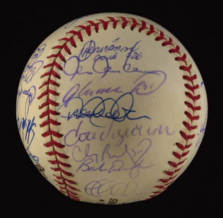 Description:2001 New York Yankees World Champions team signed baseball. Rawlings B.Selig Official 2001 World Series baseball has been signed by (28) including Jeter, Torre, Posada, Clemens, Pettitte, Williams, and others. A portion of the blue ink signatures rate 8-9 out of 10 with balance having slightly faded rating 6/7-8 out of 10. Includes LOA from JSA: Ball EX/MT-NM, Sigs EX-NM