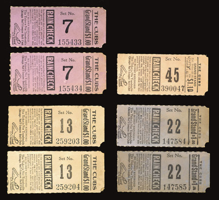 Lot of (7) early Chicago Cubs ticket stubs c.1920s. Uncommonly early grouping of stubs from the days of Bill Veeck Sr. Fronts are generally clean with "The Cubs" team name printed on, mounting residue on verso of all: Range VG-EX