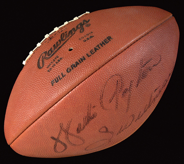 Description:Rare Walter Payton playing career era autographed football. Rawlings Pro football has been signed on the side panel, "Walter Payton" with added "Sweetness" inscription. The signature rates 7/8 out of 10. The panel below bears additional inscription which has largely faded but appears to be a heart with "XX" and the date "198_" below. Ball exhibits very light handling wear and remains fully inflated for display, however air receptacle has fallen in. One of a scant few playing days single signed examples we have encountered. Includes LOA from JSA: EX-EX/MT