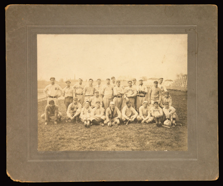 Description:Boston Doves (Braves) team cabinet photograph c.1908. Rare original mounted image picturing the team posed in uniform standing and seated on the field. Players include Kelley, Beaumont, Graham, Mattern, and Dahlen. Image quality remains very fine with some light wear to the edges of the mount. "Murphy & Farrar, Augusta/GA" photographer's paper label is affixed to the reverse. The photo originated from the personal collection of team member August Dorner and includes Xerox copies of supporting items related to Dorner: EX