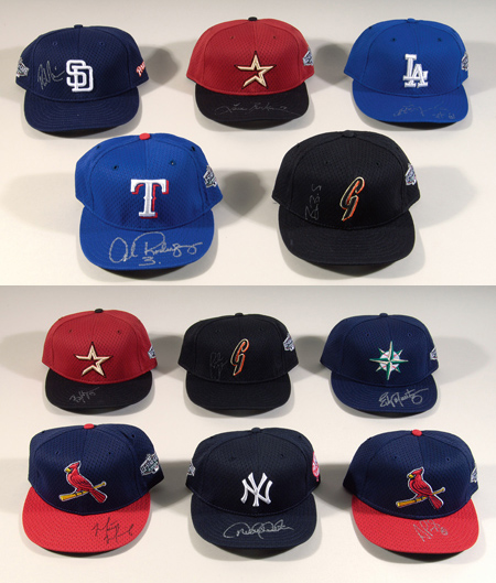 Description:Lot of (11) 2001 All-Star Game participant autographed workout day/batting practice hats. New Era 59Fifty Authentic Collection hats identical to what was worn onfield each having "All Star Game 2001" patch and respective team logos embroidered on sides. Signed either on the brim or next to the team logo on front including Jeter, Pujols, Bonds, A.Rodriguez, Berkman, Nevin, Aurilia, Park, Morris, Wagner, and E.Martinez. Silver paint pen (1 marker) signatures rate 8 to 9 out of 10. Very strong grouping of modern-era talent. Includes auction LOA from JSA and letter of provenance from Curt Schilling: NM-MT