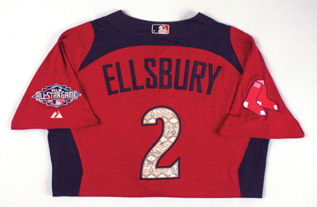 Description:2011 Jacoby Ellsbury autographed American League All-Star Game Workout Day/Home Run Derby Jersey. Maroon polyester jersey has "American" team name lettered across the front and "Ellsbury" on back along with number "2."-Boston Red Sox logo patch is affixed to the right sleeve with MLB All-Star Game logo patch on the left. Majestic label sewn on front tail and "Cool Base" and size 44 flag tags are affixed to the seam. Proper 0078 wash tag on interior. Signed on the back number in black marker rating 9 out of 10 with affixed MLB hologram FJ744246. Includes auction LOA from JSA: NM