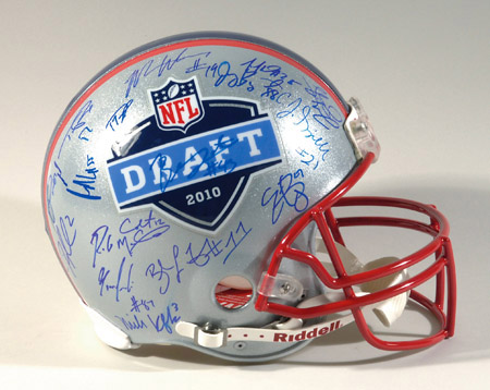 Description:2010 Draft Picks multi-autographed full size helmet. Riddell vs.R4 helmet signed by (37) including Colt McCoy, Sam Bradford, Ndamukong Suh, Eric Berry, C.J. Spiller, Ryan Mathews, Dez Bryant, Jahvid Best, Dexter McCluster, and many others. Signatures rate 7/8 to 10 out of 10, with a few slight smudges. Includes NFL Auction COA from PSA/DNA (serial #ed sticker is affixed): NM
