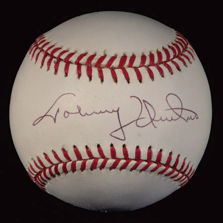 Description:Johnny Unitas single signed baseball. Rawlings B.Brown OAL baseball has been signed on the sweetspot, "Johnny Unitas." Black ink signature rates 8 out of 10. Includes auction LOA from JSA and has JSA authentication sticker affixed: EX/MT-NM