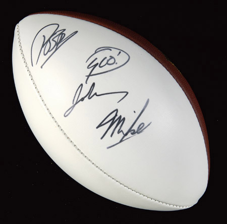 Description:Goo Doo Dolls multi-autographed NFL white panel football. Wilson "The Duke" R.Goodell NFL white panel football signed by John Rzeznik with "Goo!" inscription, Robby Takac, and Mike Malinin. Signatures rate 7/8 to 8 out of 10 with some portions of the signatures slightly lighter than other portions. Includes NFL Auction COA from PSA/DNA (serial #ed sticker is affixed): NM