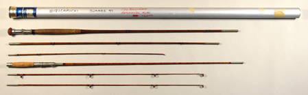 Description:Lot of (2) vintage Ted Williams personal wooden fly fishing rods and travel case to include: Leonard Mills Co. model bamboo rod retaining two original shafts with visible manufacturer stampings on handle area. Etched initials and date, "G.M.L.La. B. 1904" onto the metal butt at the end of the handle: VG-EX and unmarked early wooden rod retaining two piece shaft and original cork handle: EX. The lot includes Orvis metal rod travel case with "Ted Williams Hernando, FL" written in Ted's hand on exterior in red marker along with (1) original linen sheath. Includes auction LOA from JSA (handwritten name on case)