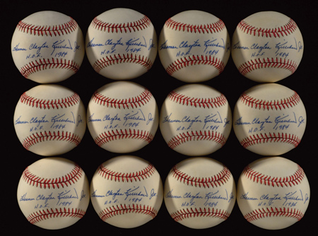 Description:Lot of (24) Harmon Killebrew full name single signed baseballs. Two dozen Rawlings B.Brown OAL baseballs, each signed on the sweetspot, "Harmon Clayton Killebrew Jr" with added "HOF 1984" inscription. Blue ink signatures rate 8 to 9 out of 10. Approximately (6) have slight smudge and/or ink transfer and a larger portion are slightly affected by very minor scattered toning. Includes auction LOA from JSA and letter of provenance from Nita Killebrew: Range EX/MT-NM/MT